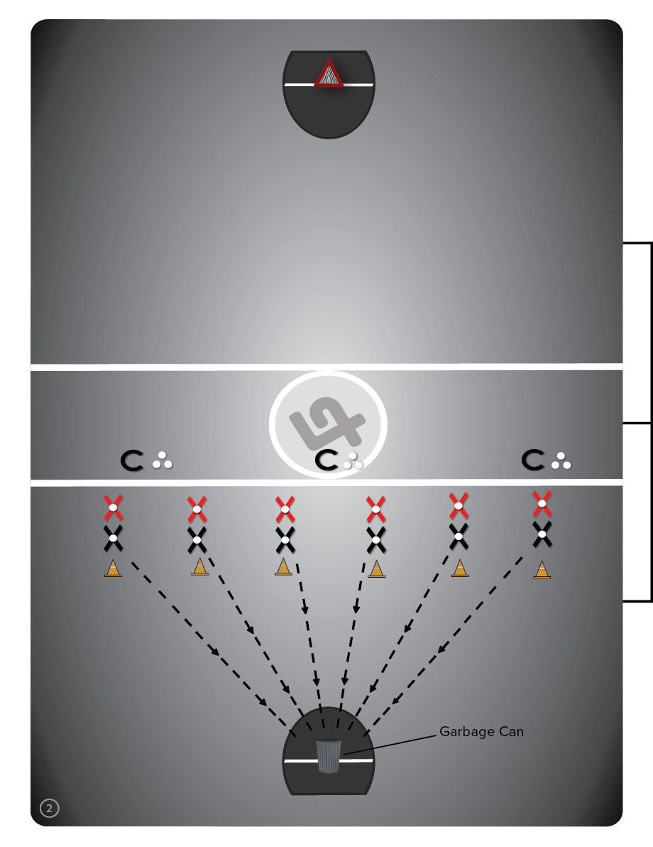 - Lines should be an appropriate distance away from the garbage can, depending on age and skill level. Place pylons on the ground to mark the start of each line, where required.