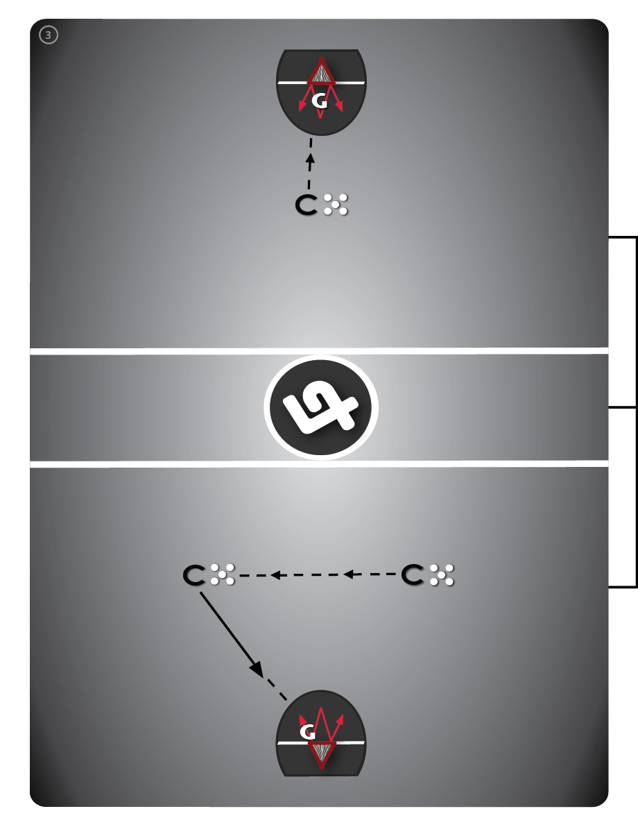 Trenér nemusí střílet vždy, ovšem brankář pokračuje v pohybu po pěti standardních pozicích (pohybem opisuje písmeno W) bez ohledu na to, zda střela přijde či nikoliv.