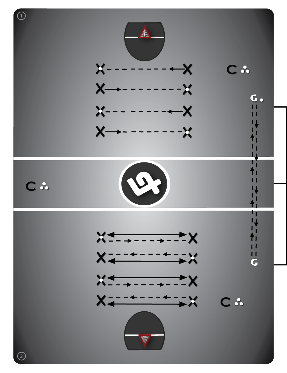 Varianta 3 (3 min): sbírání po směru Hráč bez míče vyběhne ke druhému hráči z dvojice, na jeho úrovni se otočí a běží zpět.