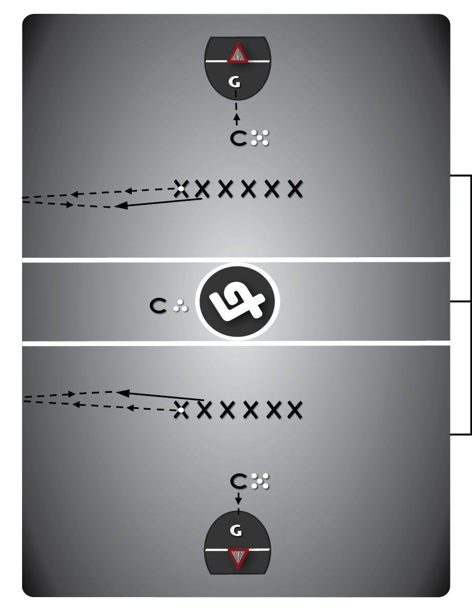 Varianta 4 (5 min): počítání přihrávek Stejné jako předchozí, hráči si v zástupu počítají úspěšné přihrávky bez spadnutí míče. Při ztrátě míče se počítá znovu od nuly.